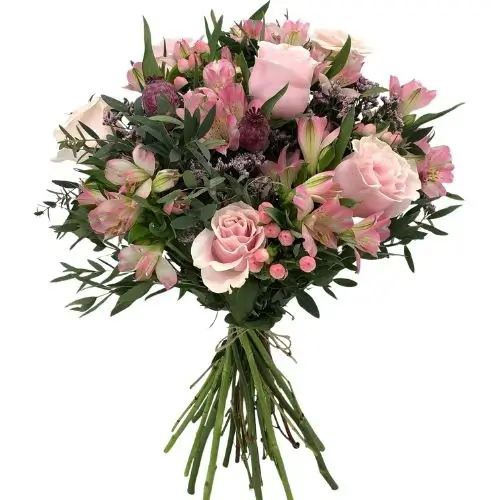Este encantador ramo de flores en tonos pasteles combina la suavidad de las rosas rosadas con la elegancia de las alstroemerias, creando un arreglo floral lleno de armonía, frescura y delicadeza, ideal para decorar tu hogar o regalar en momentos especiales.