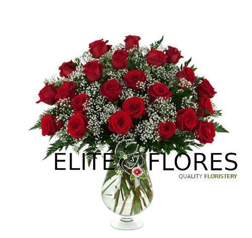 Elija veinte y tres rosas en un jarrón de capullos hasta una increíble exhibición de tres docenas de exuberantes rosas rojas