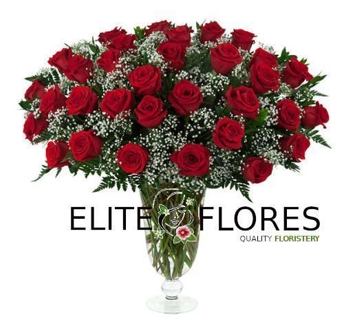 Elija treinta y dos rosas en un jarrón de capullos hasta una increíble exhibición de tres docenas de exuberantes rosas rojas