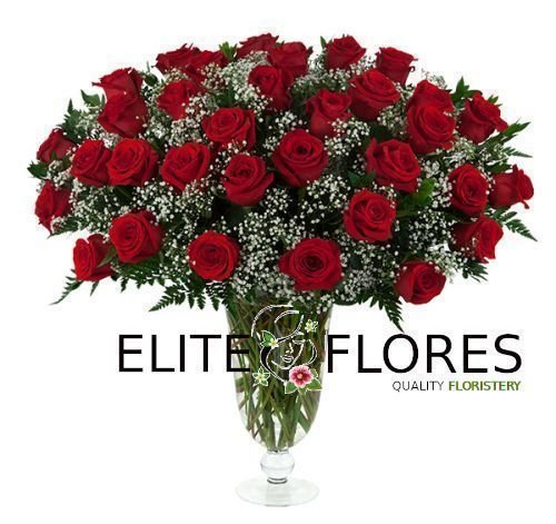 Elija treinta y tres rosas en un jarrón de capullos hasta una increíble exhibición de tres docenas de exuberantes rosas rojas