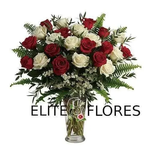 Belleza verdadera.Un arreglo floral de 24 rosas entre rojas y blancas es realmente una cosa hermosa, y esta joya floral cumple por completo.