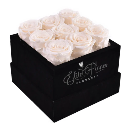Caja con 9 rosas blancas