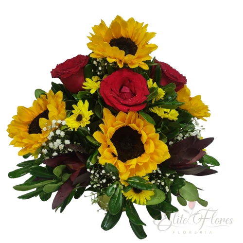 Girasoles con rosas
