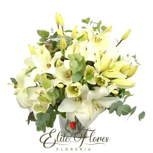 ¿Quién es el más hermoso de todos? Este florero con lilium y rosas blancas es para dar una impresionante declaración de tu amor más puro.